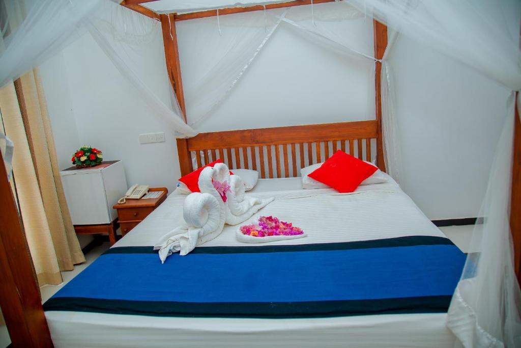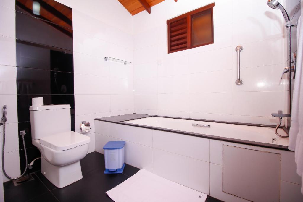 Our elegantly appointed, air-conditioned rooms are designed for your utmost relaxation, each featuring a private balcony, tiled flooring, and a luxurious four-poster bed with a mosquito net. Embrace the tranquil ambiance of your surroundings and unwind in your spacious room, complete with a wardrobe, desk, and an attached bathroom with a shower facility. At Rockery Villa Ayurveda, guests can explore the lush landscape with rental bicycles or partake in specially arranged tours. Savor delectable Sri Lankan and Western cuisine at our on-site restaurant, and enjoy a variety of beverages at the bar. Barbecue facilities are also available upon request, making for memorable dining experiences under the stars. Located just a 5-minute drive from Lunuganga and a 35-minute drive from Hikkaduwa, our villa offers the perfect blend of peaceful retreat and accessibility.